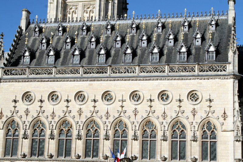 Po zachodniej stronie mniejszego placu, gdzie w średniowieczu targowano suknem i zbożem, stoi gotycki ratusz (hôtel de ville) z XVI wieku. W jego przedsionku ustawiono wielkie kukły, które obnoszone są po mieście w czasie festynów.